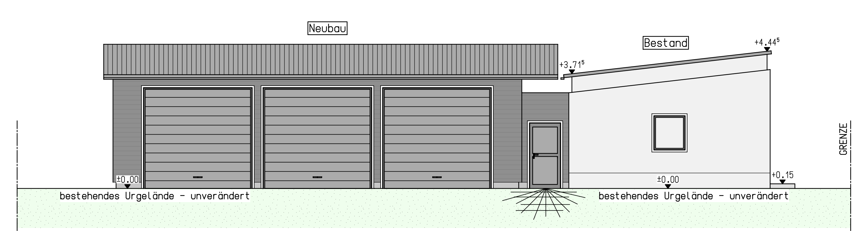 Anbau eines Lagerschuppens an das bestehende Klärwärtergebäude auf dem Gelände der Kläranlage in Langenmosen.